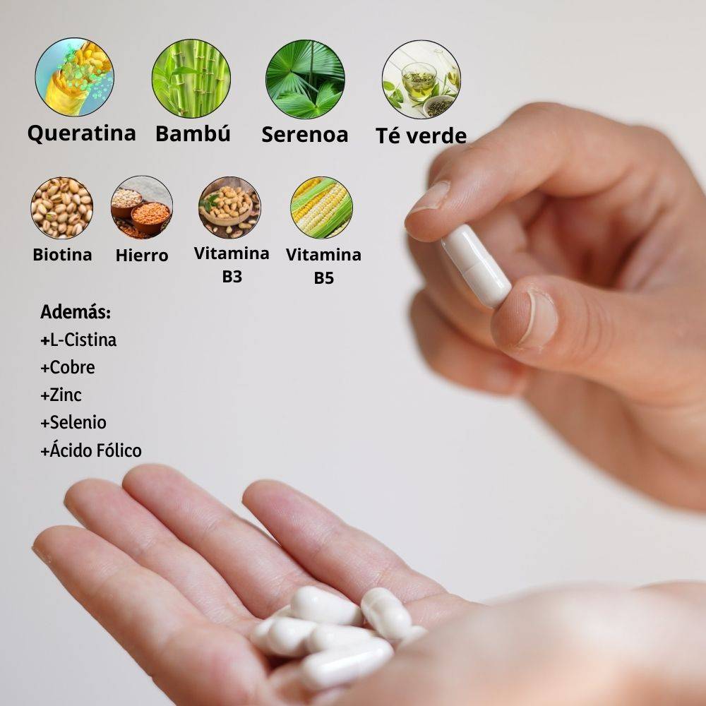 Bambú, serenoa repens, extracto té verde, queratina.