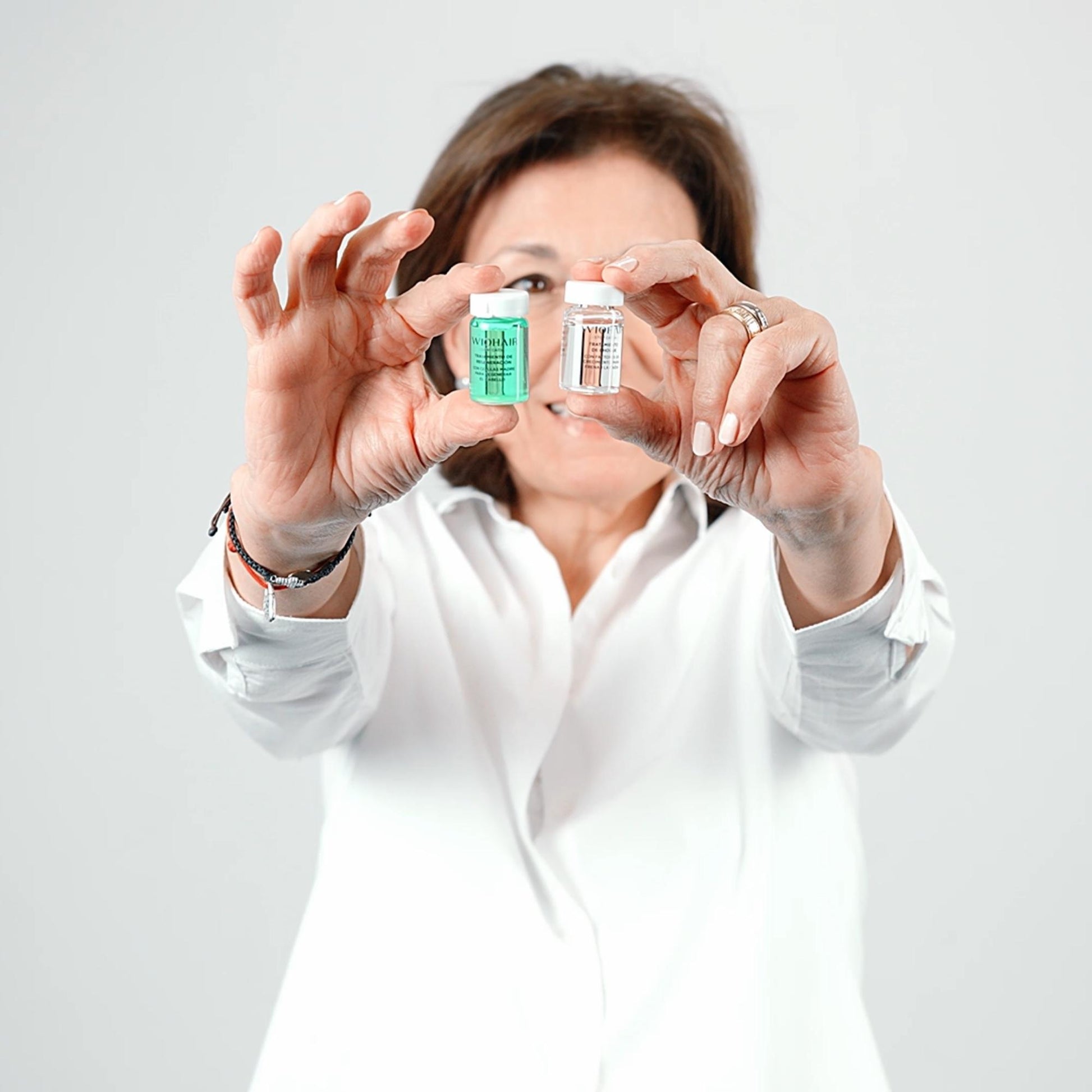 Con el cabello seco o ligeramente húmedo, aplica una de las Ampollas Top Eficacia WIOHAIR directamente sobre el cuero cabelludo.