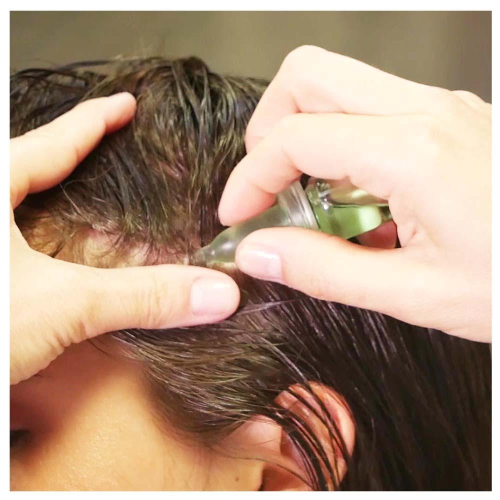 Con el cabello seco, aplica el Exfoliante Capilar WIOHAIR directamente sobre el cuero cabelludo.