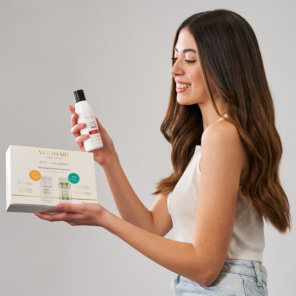 Wiohair combina activos avanzados que trabajan a nivel del folículo piloso para favorecer un entorno óptimo para el crecimiento del cabello y mejorar su calidad con el uso continuado.