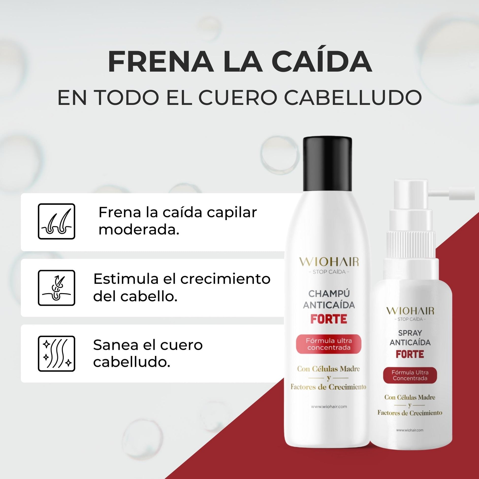 Mientras muchos productos actúan solo sobre el cabello visible, Wiohair trabaja en el origen: el cuero cabelludo y el folículo piloso.